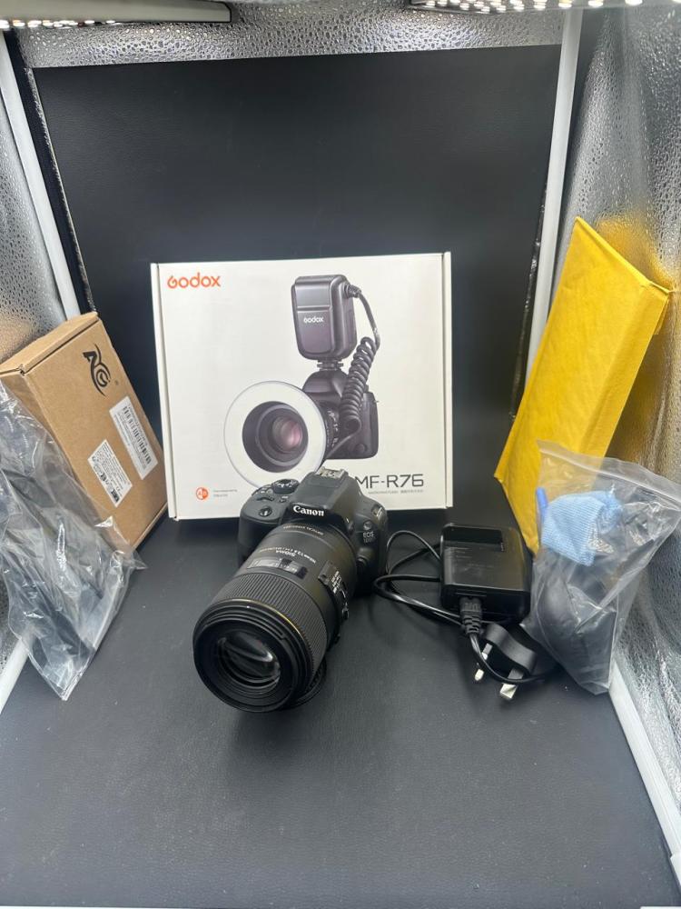 كاميرا كانون D100 مع عدسة ماكرو واضاءة