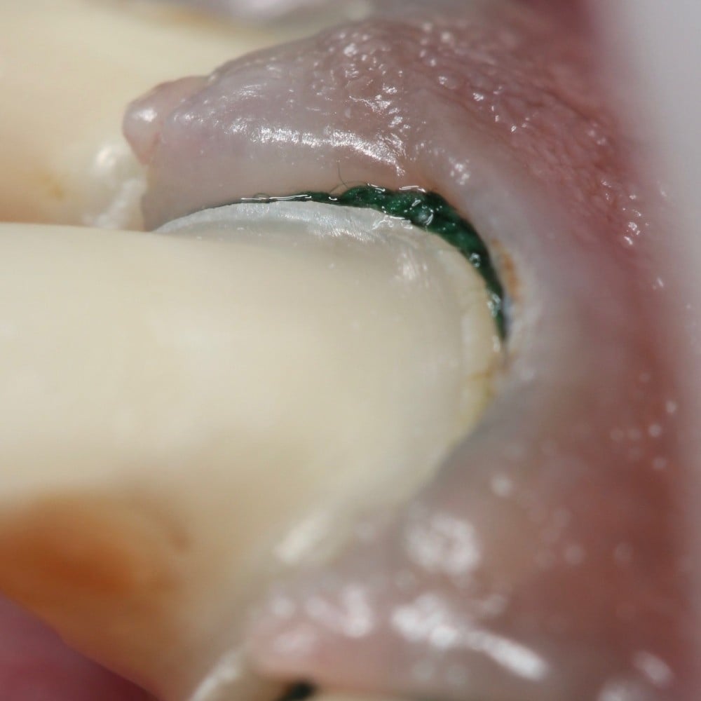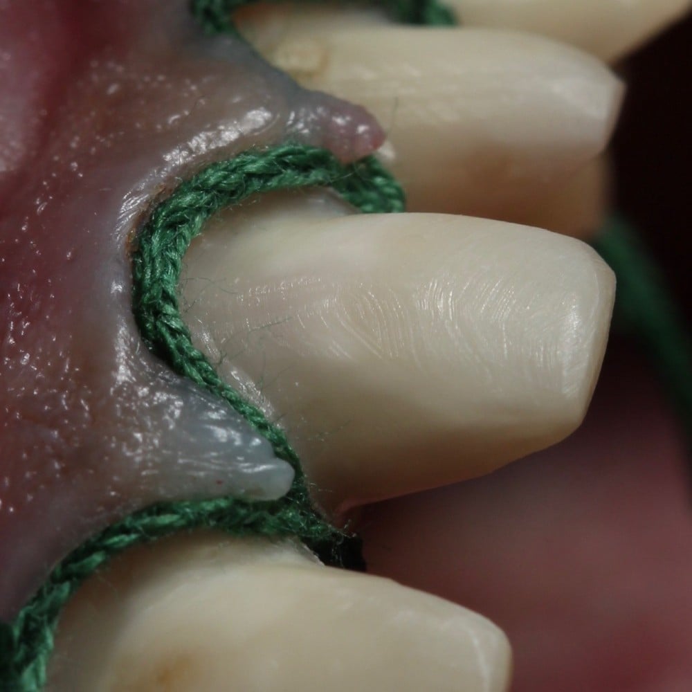 - Using this instrument to push the retraction cord easily between the gum under finish line of the tooth after preparation